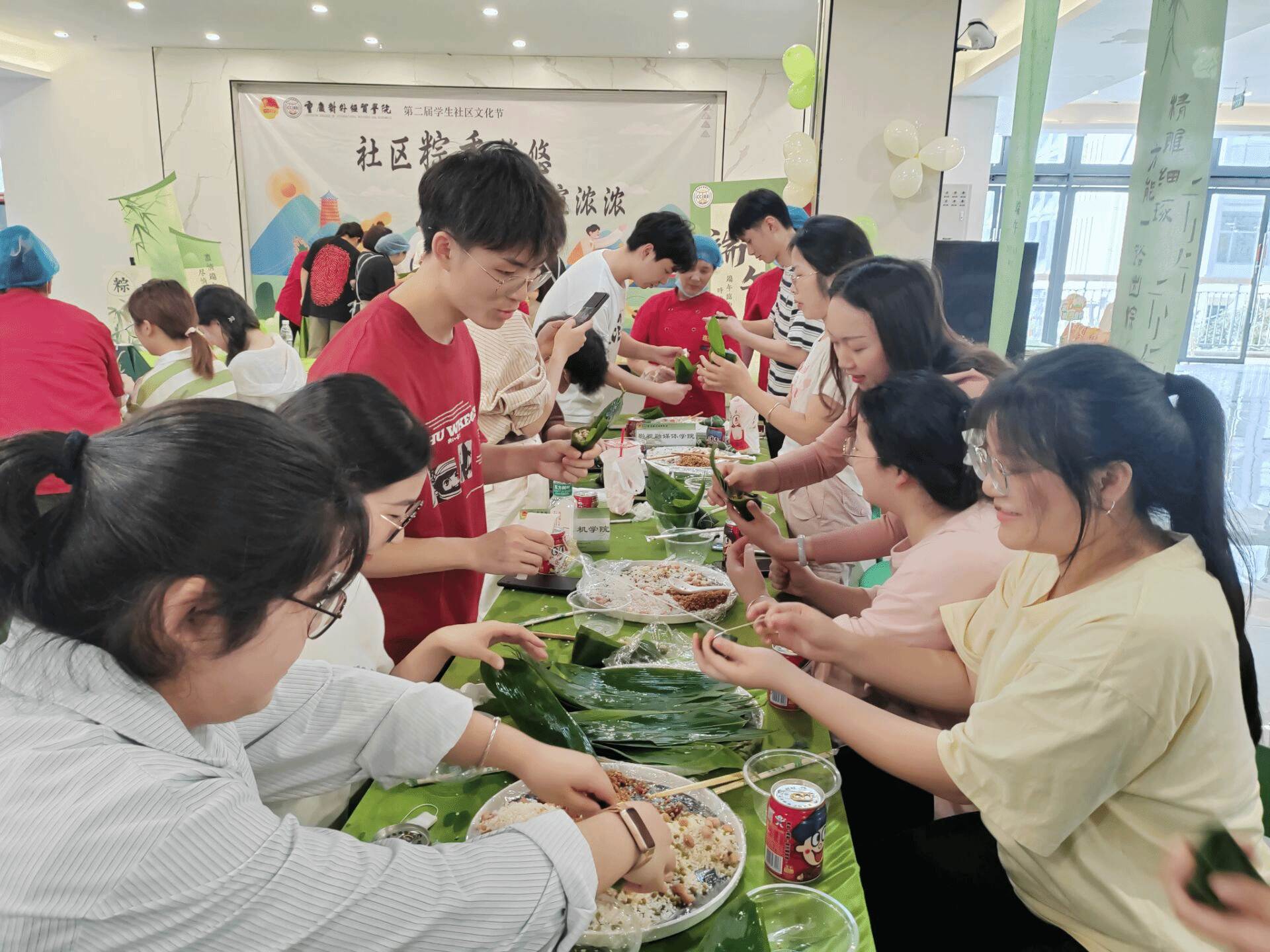 同学们包粽子