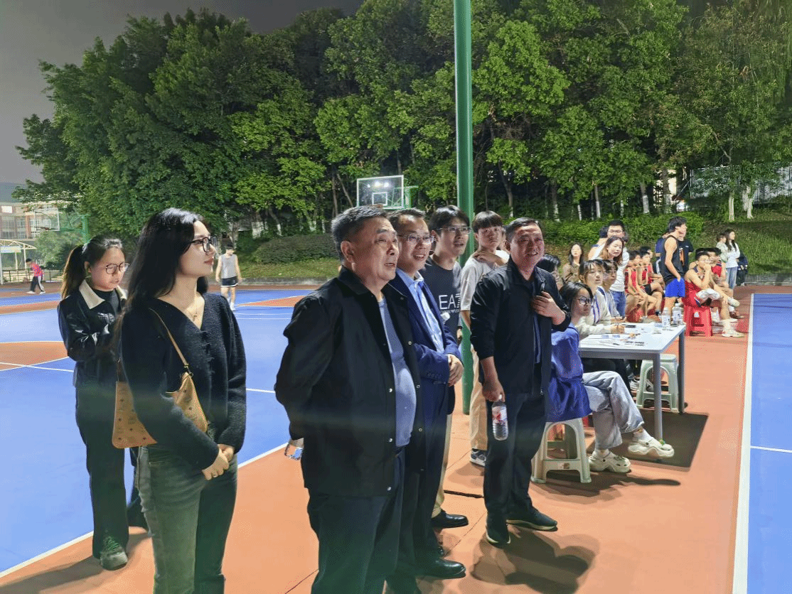 【本网讯】近日,重庆对外经贸学院第三届体育文化节之“CCIBE杯”校园篮球赛火热开赛,职业教育学院男子篮球队在A校区篮球场迎来了首场比赛,学院领导亲临现场,为篮球健儿们注入动力,加油助威。