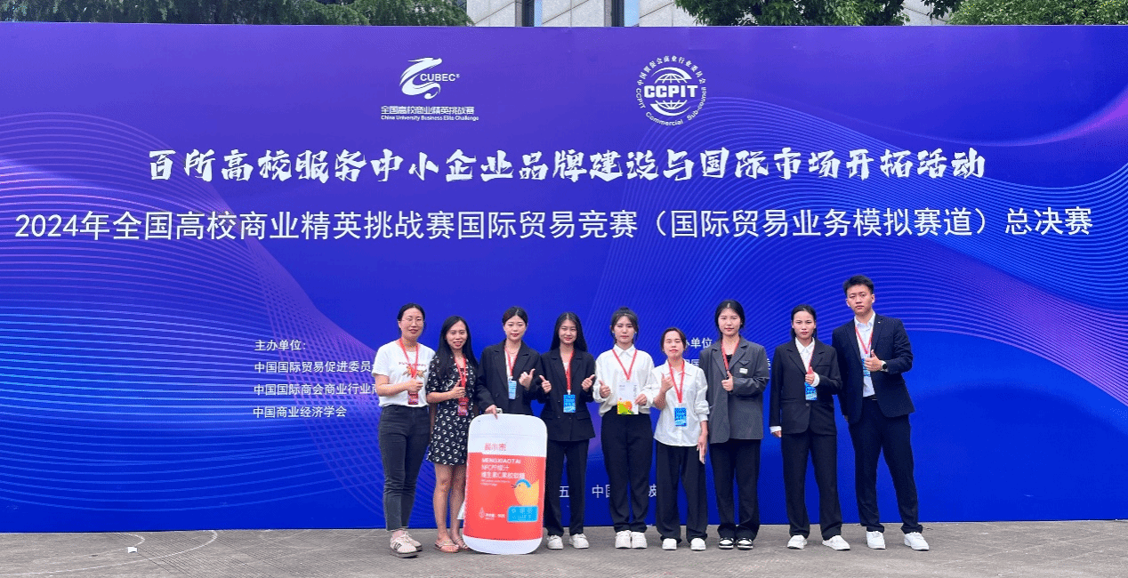 本次竞赛是由中国贸促会商业行业委员会、中国国际商会商业行业商会和中国商业经济学会联合主办,中国贸促会商业行业委员会承办的国家级学科竞赛活动,是目前学科竞赛排行榜目录中唯一的国际贸易专业赛事活动。在这两个月的备赛过程中,受到了学院领导、全体教师以及檬泰生物科技公司的鼎力支持,7名同学从紧张的学习阶段调出大量的时间并且付出巨大的精力,认真完成整个竞赛过程。相信这次大赛的积极意义也将在学院经管类专业同学间形成一个良好的延续氛围,不仅开阔了参赛师生的视野,积累了宝贵的赛事经验,而且提高了学生对中小企业出海、跨境电商产业链条的认知与把控能力,以及实际业务情境下的决策与执行能力,为学校高质量发展与创新人才培养做出贡献。