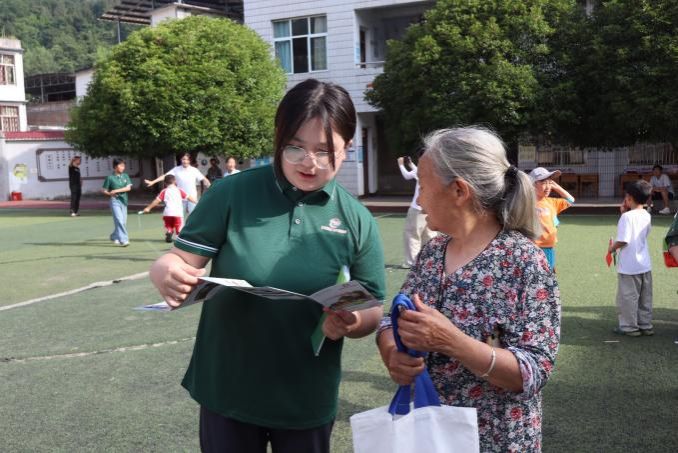 校园外,实践团前往鹿鸣乡集市开展户外推普宣传。志愿者们搭建宣传展台,向过往乡亲发放国家通用语言学习手册、常用短语卡片等宣传资料,现场示范标准发音,解答乡亲们在日常交流、外出务工、子女教育中遇到的语言障碍问题。针对部分少数民族乡亲的语言习惯,志愿者采用“方言+通用语”对照讲解的方式,帮助其更好地理解和掌握通用语言表达技巧,吸引了大量赶集群众驻足参与。