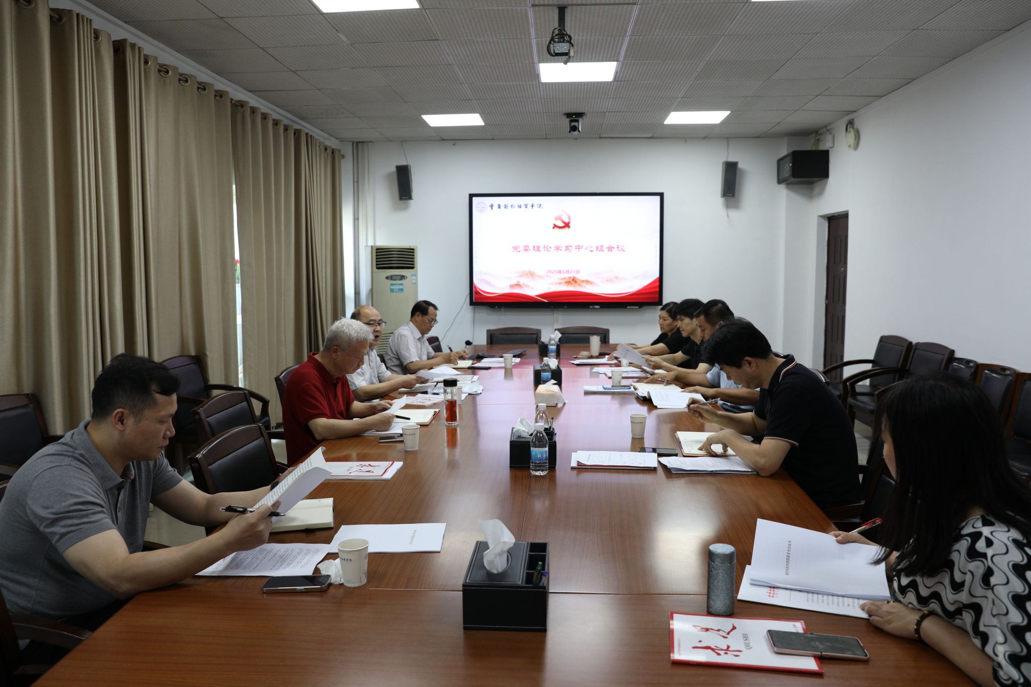 6月27日,学校召开党委理论学习中心组会议,围绕中央八项规定精神、高校安全管理、主题教育实践及警示教育等内容开展深入学习研讨。会议由党委书记、督导专员何大海主持。校领导、党委委员、纪委委员、党政办、宣传部负责人等参会。会议伊始,与会人员集体研读《新时代的中国国家安全白皮书》,明确国家安全教育对维护校园稳定的重要意义,强调全校需树牢国家安全意识,筑牢校园安全防线。随后,会议何书记领学蔡允革同志讲话精神,要求以其为指引,推动学校教育教学与管理水平提升。