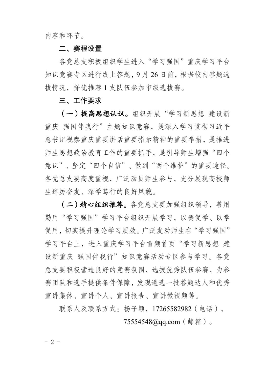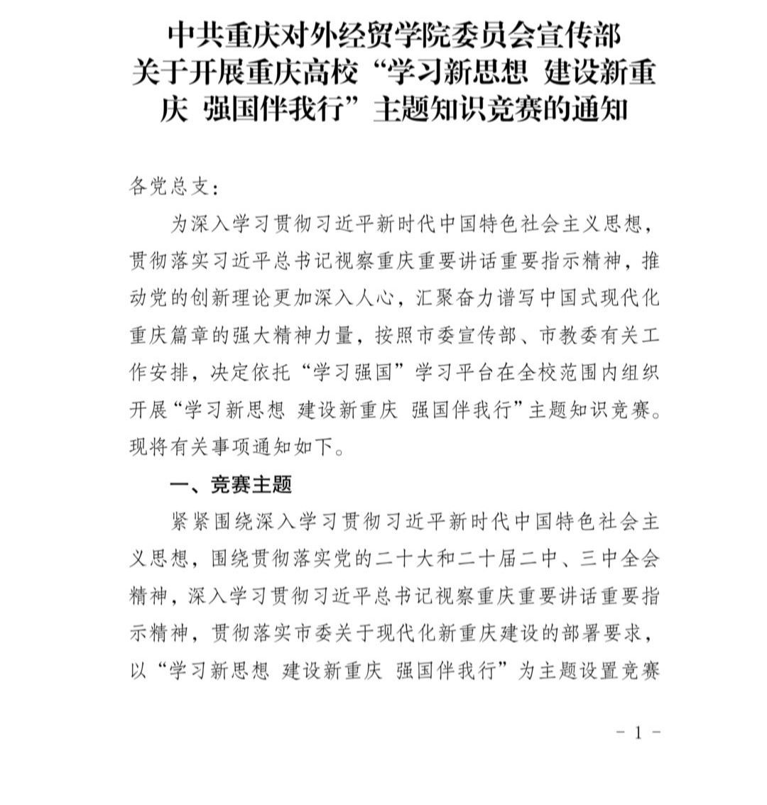 中共重庆对外经贸学院委员会宣传部 关于开展重庆高校“学习新思想 建设新重庆 强国伴我行”主题知识竞赛的通知